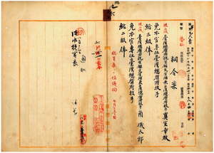 九六 台湾総督府民政部財務局長代理峡謙斉ノ内申ニ依リ台湾総督府税関鑑定官補兼台湾総督府技手ノ真室幸教ト角儀太郎ノ本官ヲ免シ台湾総督府技手専任ヲ命ス