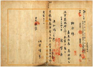一〇〇 台東庁長森尾茂助ノ具申ニ依リ台湾総督佐久間左馬太ヨリ文官普通懲戒委員会(懲戒委員長大島久満次・懲戒委員ノ鹿子木小五郎・宮尾舜治・大津麟平)ヘ審査ヲ要求セシメタル檀ニ職務ヲ抛棄シ内地ニ帰還シタル台東庁税務課勤務台東庁属高田金三ニ対シ文官普通懲戒委員会ノ議決ニ従ヒ文官懲戒令第二条第一号及第二号ニ該当スルニ依リ同令第三条ヲ適用シ本官ヲ懲戒免官ス[台東庁長森尾茂助ノ内申書は未綴]