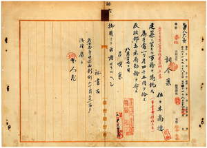 六 台湾総督府民政部土木局長心得長尾半平ノ内申ニ依リ名古屋高等工業学校建築科卒業佐々木尚徳ニ建築ニ関スル事務ヲ嘱託シ台湾総督府民政部土木局勤務ヲ命ス