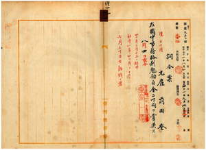 一一 台湾総督官房文書課長代理三村三平ノ内申ニ依リ台湾総督府元雇前田登ハ在職中事務格別勉励ニ付キ一時金ヲ賞与ス
