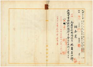 一九 台湾総督府農事試験場長代理藤根吉春ノ具申ニ依リ元台湾総督府農事試験場技手北畠善四郎ニ在職中事務格別勉励ニ付キ一時金ヲ賞与ス