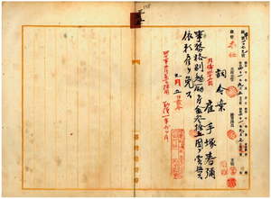 雇手塚春彌依願解雇ノ件
