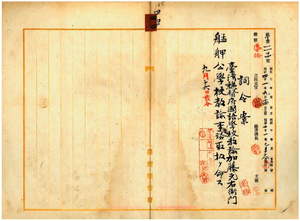 台灣總督府國語學校教諭加藤元右衛門艋舺公學校教諭事務取扱ノ件