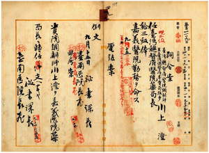 四九 嘉義医院長事務取扱加藤信平ノ内申ニ依リ台南医院勤務台湾総督府医院調剤師兼台湾総督府専売局技手川上澄ヲ台湾総督府医院薬局長ニ任シ嘉義医院勤務ヲ命ス