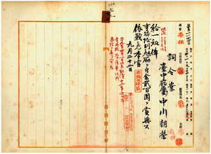 台中廳屬中川朝榮昇級賞與并ニ依願免本官