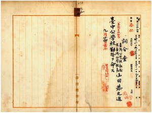 台灣公學校教諭兼台灣公學校長山田恭之進臺中公學校勤務