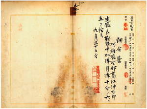 九四 阿緱庁長佐々木基ノ内申ニ依リ枋リョ支庁長心得阿緱庁警部高江仲太郎ニ枋リョ支庁長勤務中加俸月俸十分ノ六・五ヲ給ス(1908-10-15~1908-11-02)