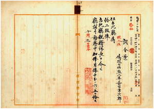 一二 台北庁長加藤尚志ノ内申ニ依リ台湾総督府民政部財務局勤務台湾総督府属吉田幸次郎ヲ台北庁属ニ任シ台北庁税務課長ヲ命シ課長勤務中加俸月俸十分ノ五・六ヲ給ス