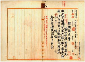 二八 鳳山庁長横山虎次ノ内申ニ依リ鳳山庁雇出原立丸ヲ鳳山庁属ニ任用ノ儀ニ付キ文官普通試験委員長ヘ銓衡請求ノ件
