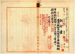二九 台北測候所勤務台湾総督府測候所技手平敷朝綱ノ辞職願ニ依リ事務格別勉励ニ付キ一時金ヲ賞与シ本官ヲ免ス