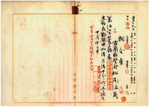 三九 宜蘭庁長中田直温ノ内申ニ依リ宜蘭庁警部松尾温爾ヲ宜蘭庁属ニ兼任シ頭囲支庁長勤務中加俸月俸十分ノ六・五ヲ給ス