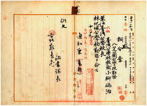 四七 斗六庁長山口利文ノ内申ニ依リ八芝蘭公学校勤務台湾公学校教諭小柳島治ヲ台湾公学校長ニ兼任シ林化埔公学校勤務ヲ命ス