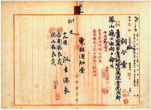 四九 鳳山庁長横山虎次ノ照会ニ依リ台南庁属兼台湾総督府属泥堂光次郎ニ鳳山庁ヘ出向ヲ命ス