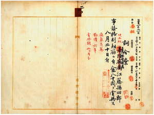 二〇 台湾総督府民政部通信局長代理井村大吉ノ内申ニ依リ病気療養中ノ台湾総督府属江藤孫四郎ニ事務格別勉励ニ付キ一時金ヲ賞与ス