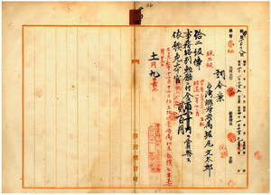 二四 台湾総督府民政部総務局長山田新一郎ノ内申ニ依リ台湾総督府属堀尾文太郎ハ疾病ニ罹リ職ニ堪ヘサル旨ヲ以テ辞職願ニ依リ昇級ノ上事務格別勉励ニ付キ一時金ヲ賞与シ本官ヲ免ス