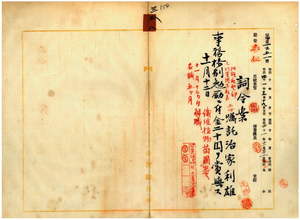 三八 台湾総督府民政部殖産局長宮尾舜治ノ内申ニ依リ元阿里港支庁長阿緱庁警部台湾総督府無給嘱託治家利雄(一一月一二日付解職)ニ事務格別勉励ニ付キ一時金ヲ賞与ス