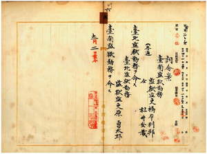 六 台南監獄長典獄上田孫三郎ト台北監獄長典獄志豆機源太郎ノ内申ニ依リ台南監獄勤務監獄監吏ノ橋本利邦ト松井安蔵ニ台北監獄勤務ヲ命シ、台北監獄勤務監獄監吏原勇太郎ニ台南監獄勤務ヲ命ス
