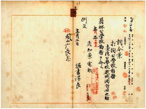 七 鳳山庁長横山虎次ト彰化庁長小松吉久ノ内申ニ依リ打狗公学校勤務台湾公学校教諭酒匂七之助ニ員林公学校勤務ヲ命ス