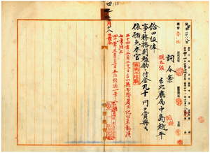四二 台北庁属中島越平ハ麻拉里亜ニ罹リ職ニ堪ヘサル旨ヲ以テ辞職ヲ願出タルニヨリ文官分限令第三条第一項第二号前段ニ依リ事務格別勉励ニ付キ一時金ヲ賞与シ本官ヲ免ス