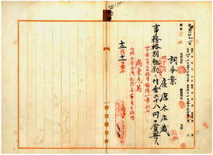 四四 台湾総督府民政部土木局長心得代理高橋辰次郎ノ内申ニ依リ台湾総督府雇唐木庄蔵ニ事務格別勉励ニ付キ賞与スル処病気危篤ニ付キ慰労トシテ一時金ヲ特別賞与ス