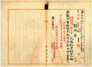 五一 台湾総督府民政部土木局長心得代理高橋辰次郎ノ内申ニ依リ雨量観測事務嘱託中村五九助ヲ事務上ノ都合ニ依リ解職シ(一一月三〇日付)事務格別勉励ニ付キ一時金ヲ賞与ス