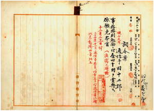 五三 台湾総督府通信手田中三郎ハ麻刺里亜ニ罹リ職ニ堪ヘサル旨ヲ以テ辞職願ニ依リ事務格別勉励ニ付キ一時金ヲ賞与シ本官ヲ免ス