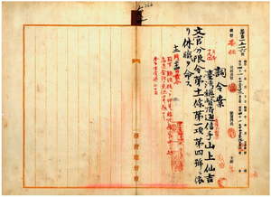 六四 基隆郵便局長早瀬已熊ノ内申ニ依リ基隆郵便局勤務台湾総督府通信手山上仙吉ニ文官分限令第一一条第一項第四号ニ依リ休職ヲ命ス