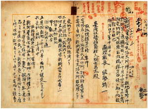 二 南投庁南投堡新街ノ陳龍ト南投庁皮仔リョ区庄長陳深江ヨリ出願ノ陳龍ノ南投庁南投堡新街ノ建物敷地ヲ新街警察官吏派出所用敷地トシテ寄付ヲ願出タルニヨリ受納シタル旨南投庁長能勢靖一ヨリ報告ノ件