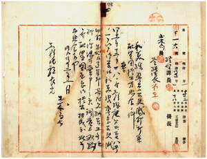 四 本島人家屋ヲ借用シタル処腐朽破損甚シキ彰化庁線西堡和美線警察官吏派出所移転新築費トシテ人民総代彰化庁線西堡和美線庄ノ保正ノ陳先聲・黄潤却・鄭束元・許永抄・黄老述・謝彭・蔡国成・林加冬ト同堡頭前リョ庄ノ保正ノ洪先覚・葉対ヨリ二九〇〇円及ヒ同堡和美線庄ノ呉文基・謝炒・謝乞食・謝東渓・許永炒・鄭啓元・謝茂臣・葉源・葉渓・葉臨・鄭徹来・蔡万炮ト同堡月眉庄ノ蔡国成・蔡国花カラ敷地寄附願受納並ニ工事施行ニ関スル彰化庁長小松吉久ノ稟申ニ付キ認可ノ件(指令第八〇五号)