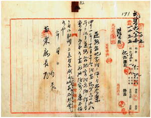 五 苗栗庁苗栗三堡后里庄カラ同堡大甲街間道路トシテ台北庁擺接堡枋橋街興豊疇管理林彭寿ヨリ同堡庄尾庄ノ張泉以下同堡大甲街ノ蔡立・劉長・呉木、同堡四塊厝庄ノ柯潭・張沢強管理人苗栗三堡墩仔脚庄ノ張国泰ト張彩臣、苗栗三堡后里庄ノ黄呈・黄水寡・黄中旦・梁允棟、新竹庁竹北一堡新竹街土名北門外ノ葉登、新竹庁竹北一堡樹林頭庄ノ蘇水源、苗栗庁苗栗三堡頂店庄ノ林最番・苗栗三堡大甲街ノ郭虞泉・王鵠・王賓・王燕冀・王元吉・王元圭・王氏梅相続人王氏枝・苗栗三堡営盤口庄ノ郭論・苗栗三堡山脚庄土名頂山脚ノ黄宝・新竹庁竹北一堡大歴庄土名