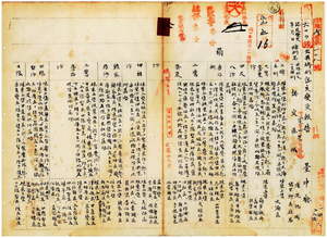 八 台中庁管内公共埤圳ノ葫芦墩圳・阿罩霧圳・渓頭圳・東勢角圳・五福圳ノ認定変更(明治四一年四月一日付)報告並ニ同報告洩レノ五福圳ヘ従来高美圳ノ支圳タル蕃仔リョ圳・牛埔圳・旧庄圳・項海口圳ノ四支ヲ合併シ高美圳名ヲ削除シタル旨回答ニ付キ台中庁長佐藤謙太郎ヨリ報告ノ件