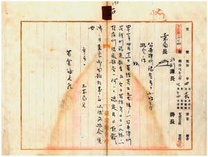 一〇 苗栗庁管内公共埤圳苑山圳ヲ苑裡圳ト改メルニ付キ認定方(明治四一年四月九日付)苗栗庁長家永泰吉郎ヨリ報告ニ関スル件[本文書及び第九文書中の報告書には公共埤圳認定日付が記載洩れのため土木局長より苗栗庁長へ照会文書あり]