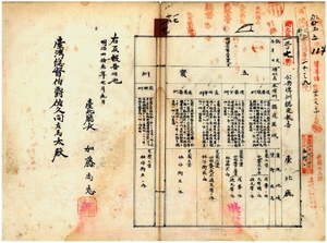 一七 台北庁管内公共埤圳五宝圳(後リョ頂圳・後リョ下圳・長田岸圳・大亀崙圳・崁脚圳)認定(明治四一年六月二九日付)方台北庁長加藤尚志ヨリ報告ノ件