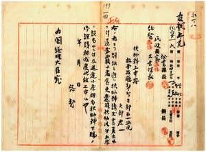 一四 元南投庁警部矢部百一ノ孤児虎一ニ遺族扶助料下付ノ件[一三を見よ・一四五五の六も見よ]