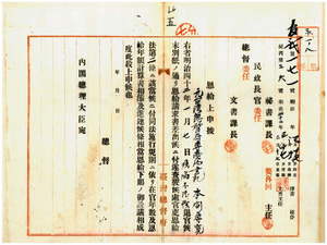 五 元台湾総督府専売局書記本間尊寛ニ恩給下賜ノ件[四を見よ]