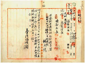 四 故大甲郵便局所属逓送人兼集配人王候郵便配達途中豪雨ノ為メ大安渓支流諸ツ漲溢シ溺死ニ付キ遺族林氏悦ニ弔祭料及遺族扶助料下付ノ件[三を見よ]