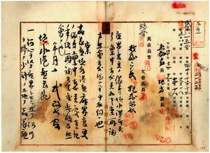 一四 塩水港庁長朝倉菊三郎ト嘉義庁長北原種忠ヨリ稟申ノ庄界変更認可ノ件(指令第六三九号・同第六四〇号)