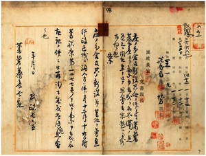 三 蕃薯リョ庁長石橋亨ノ稟申ニ依リ庄分割庄設置並ニ蕃地ヲ普通行政区域内ニ編入ニ付キ明治三八年一二月府令第八九号庁位置及管轄区域中蕃薯リョ庁管轄区域ノ楠梓仙渓東里ノ部ニ「新開庄」ヲ追加ス(府令第二九号・指令第一五五三号)