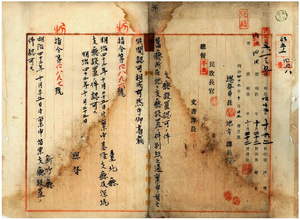 二 一〇月二五日付ヲ以テ台北庁長井村大吉・新竹庁長家永泰吉郎・台中庁長枝徳二・嘉義庁長津田毅一・台南庁長松木茂俊・阿緱庁長佐藤謙太郎ヨリ稟申アリタル支庁設置ニ付キ認可ノ件(指令第四八九六号~第四九〇一号)