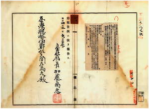一〇 第一〇号 明治三三年律令第一四号台湾家屋建築規則ヲ台北市区計画区域内ニ施行ス並ニ明治三三年一〇月台北県令第二四号ノ失効及ヒ明治三七年三月台北庁令第七号ヲ廃止ス (1909/06/27~1909/07/19)