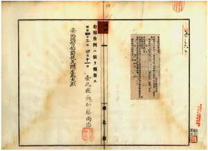 二四 第七号 明治四二年度ヨリ台北庁管内ノ大稲花公学校ノ修業年限ヲ八箇年ニ延長シ手工商業ノ二科目ヲ加フル件 (1909/04/11~1909/05/07);台北庁・深坑庁・台中庁・台南庁・台東庁ノ訓令供閲ノ件 (1909/04/17~1909/05/07)