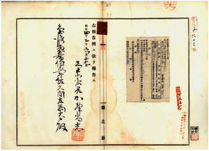 三九 第五九号 台北庁管内ノ大加蚋堡台北城内府前街栖本佐代・大加蚋堡台北城内北門街藤川類蔵ニ収入印紙売捌許可ノ件