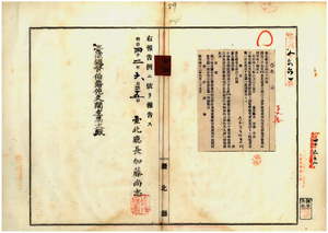四四 第六四号 明治三七年四月台北庁告示第六〇号警察官史派出所名称位置管轄区域中士林支庁石角庄警察官吏派出所ヲ囚雅警察官吏派出所トシ同位置芝蘭一堡石角庄ヲ芝蘭一堡囚雅庄ト改正ノ件