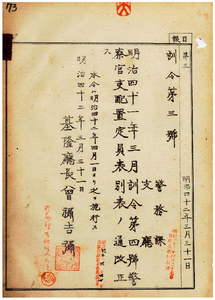 二七 第三号 明治四一年三月基隆庁訓令第四号警察官吏配置定員表改正ノ件