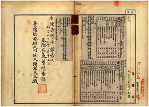三九 第一号 基隆庁管内ノ許接枝・楊紅母・呉份・洪牛・林深塗・林裕・朱鉗・邱蒸・王氏秀ハ阿片烟膏購買吸食特許鑑札亡失ニ付キ該鑑札ヲ無効トス