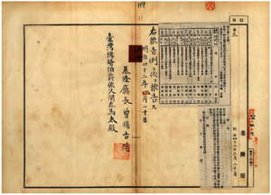 五五 第一七号 基隆庁管内ノ沈才・頼阿随・簡金獅・周圳・羅赤九・余礼洋・陳河牛・陳三和・劉査某・黄知・簡査某・劉河呆・李赤牛ハ阿片烟膏購買吸食特許鑑札亡失ニ付キ該鑑札ヲ無効トス