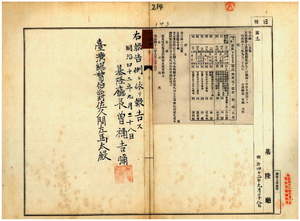 一四三 第一〇五号 基隆庁管内ノ呂心婦・呉最・林文章・林渓・呉水来・唐擦・梁則兼・張阿輪ハ煙草小売営業鑑札紛失ニ付キ該鑑札ヲ無効トス