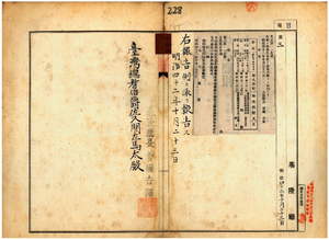 一五五 第一一七号 台南庁管内ノ効忠里安平街大阪商船株式会社安平支店ノ日本形団平船ト台南市庚陳及ノ支那形手梯ノ船鑑札無効ニ付キ同庁ヨリ通知ノ件