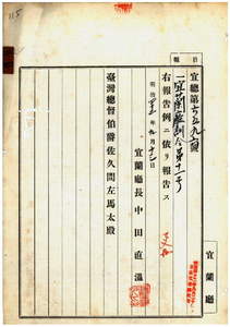 二四 第一一号 蕃産物交換規程制定ノ件 (1909-09-13 ~1909-10-20);宜蘭庁・蕃薯リョ庁・恒春庁・台東庁ノ訓令供閲ノ件 (1909-10-04 ~1909-10-20)