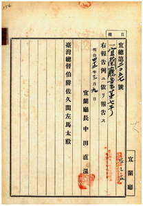 宜蘭廳告示第七號浮瓶ノ浮流等發見ノ者ハ在中ノ葉書送付スヘキ件